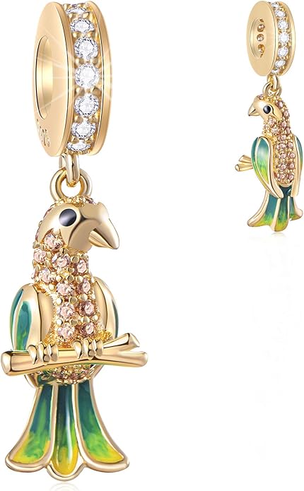 - MATERIAL&DESCRIPTION: solid 925 sterling silver parrot charm beads, 18k gold plated and delicate enamel crafts,inlaying AAAAA clear cubic zirconia material. Lead-free, Nickel-free, Cadmium-free and Hypoallergenic.