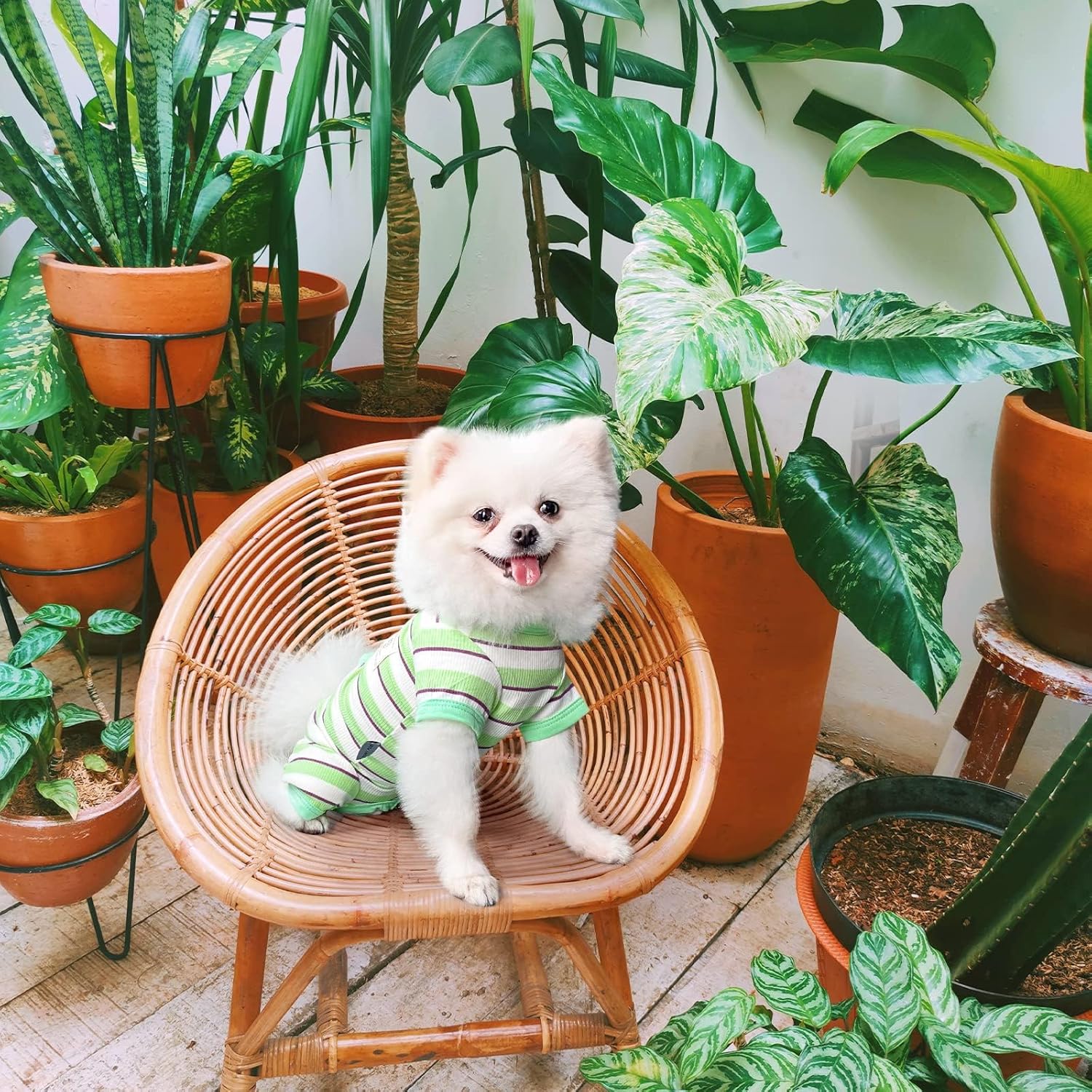 TONY HOBY Dog Pajamas, Male Dog Jumpsuit with Green Stripe, Dogs Clothes for Small Medium Size Dogs (Green&White, Boy, L)