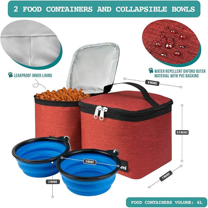 - PET SUPPLIES DOG DIAPER BAG: The dog travel backpack helps dog owners easily organize treats, kibbles, toys, leashes, and all other pet accessories and training supplies. The doggie traveling backpack comes with two food containers and two collapsible silicone dog bowls, ensuring that your pet is well-fed and hydrated during your hiking camping trip. Each food container has a 4L capacity, making it a camping gear must have for all small, medium, and large size dogs and cats.