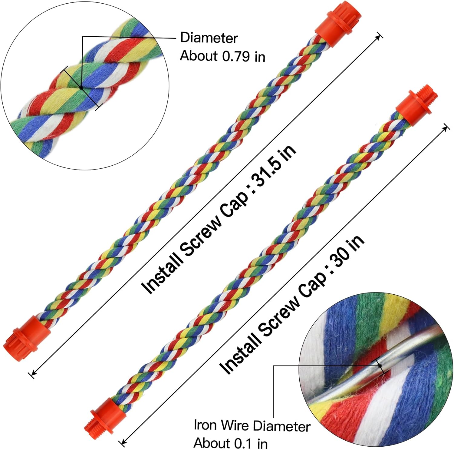 - Easy Installation:Just unscrew the plastic lids at both ends and fix them on the bird cage, and then tighten the lids, you can add a new rope perch toy for the bird cage