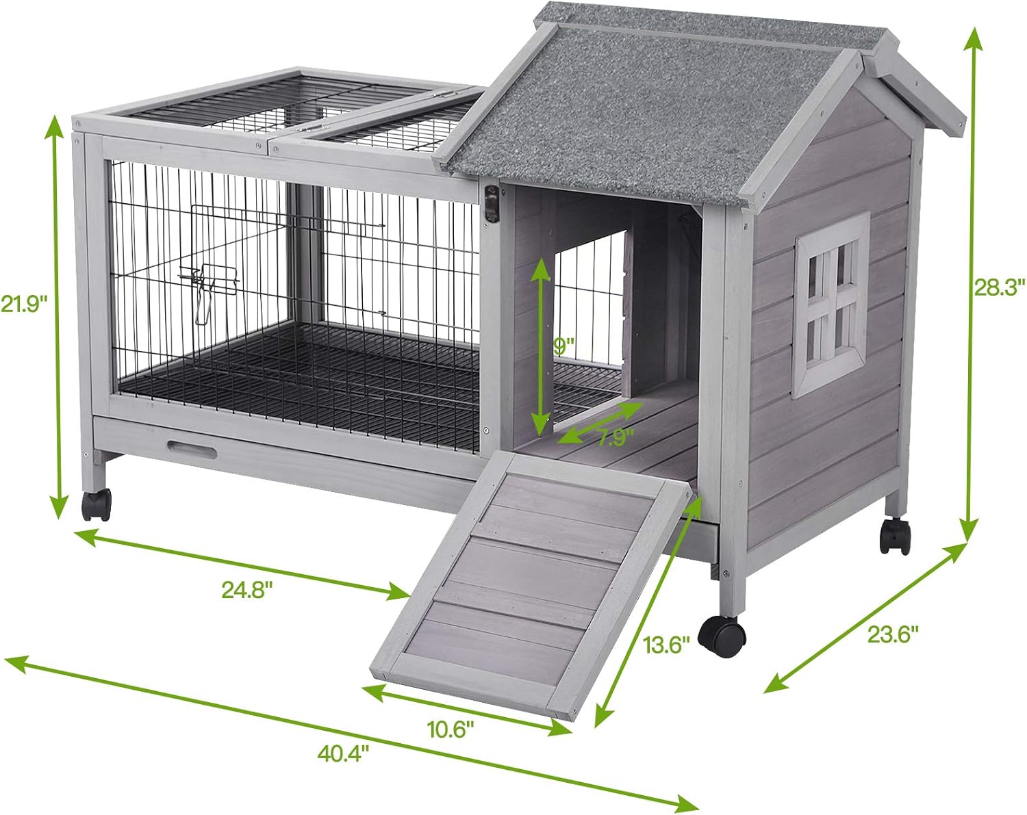 - 🐰 Rabbit hutch with REMOVABLE wire grate above the tray - Keep bunny clean from standing on their poop & urine.