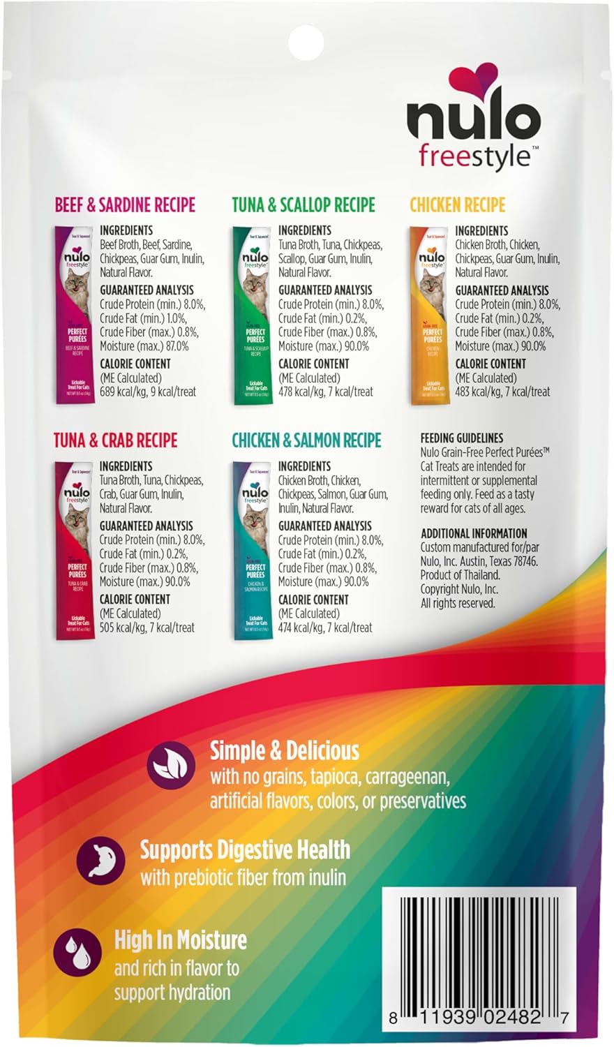 Nulo Freestyle Grain-Free Perfect Purees Premium Wet Cat Treats, Squeezable Meal Topper for Felines, High Moisture Content to Support Hydration, 0.5 Ounces in each Lickable Wet Cat Treat Pouch