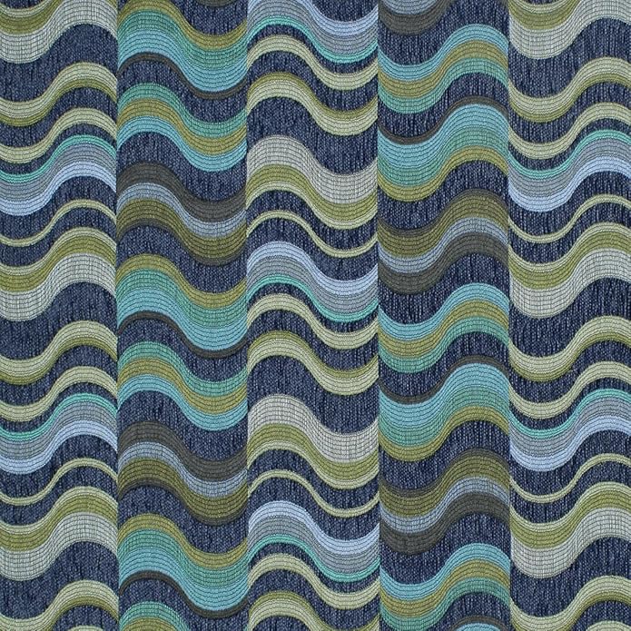 - Malibu/Blue fabric in contemporary waves of blue, green and turquoise with blue velvety inset chenille.