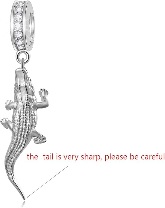 - CHARM SPECIFICATION&WEIGHT: Please check the Crocodile charm bead size before purchasing: Crocodile 24.3MM; Hole Size: 4.5-5mm; Weight:2.6g.(Warm Tips: the tail part is a little sharp and please be careful to use when wearing)