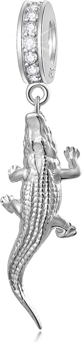 - MATERIAL&DESCRIPTION: solid 925 sterling silver Alligator charm encrusted with clear cz stone. Lead-free, Nickel-free, Cadmium-free and Hypoallergenic. Every bead is stamped 925.