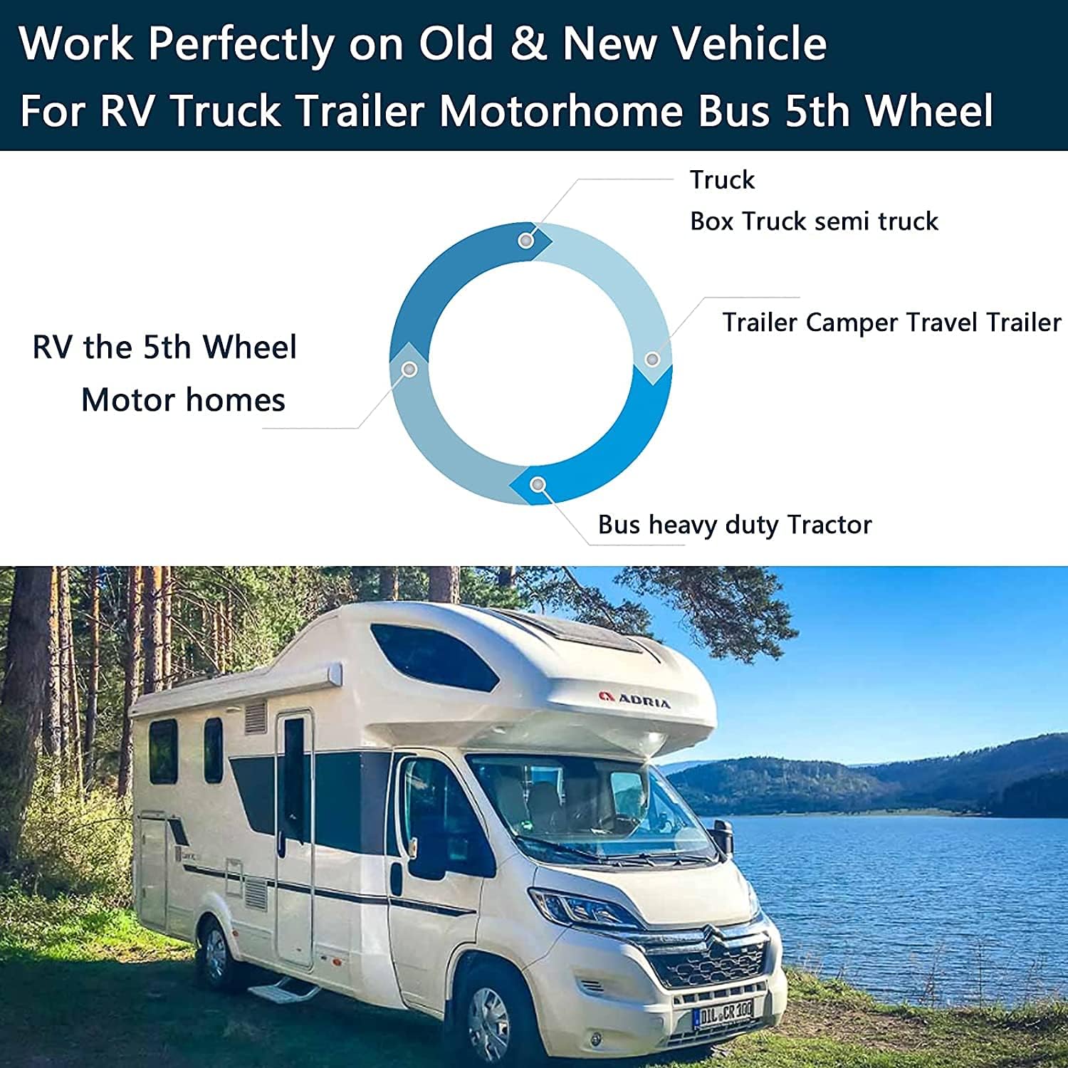 - Best Friend for: RV Truck Trailer Class A Box truck semi truck Travel Trailer Horse Trailer Bus School Bus heavy duty Camper Tractor, the 5th Wheel,Motor homes.Wide voltage power input:12-36V DC Power.HD 1080P Video:1920*1080 Pixel Monitor.4 CCD 1080P Cameras.Extremly HD and stable Image.HD day and night image helps us to observe everything surrounding us,avoid the blind spot.So we can drive with a pleasant mood. Makes our driving 100% safe.
