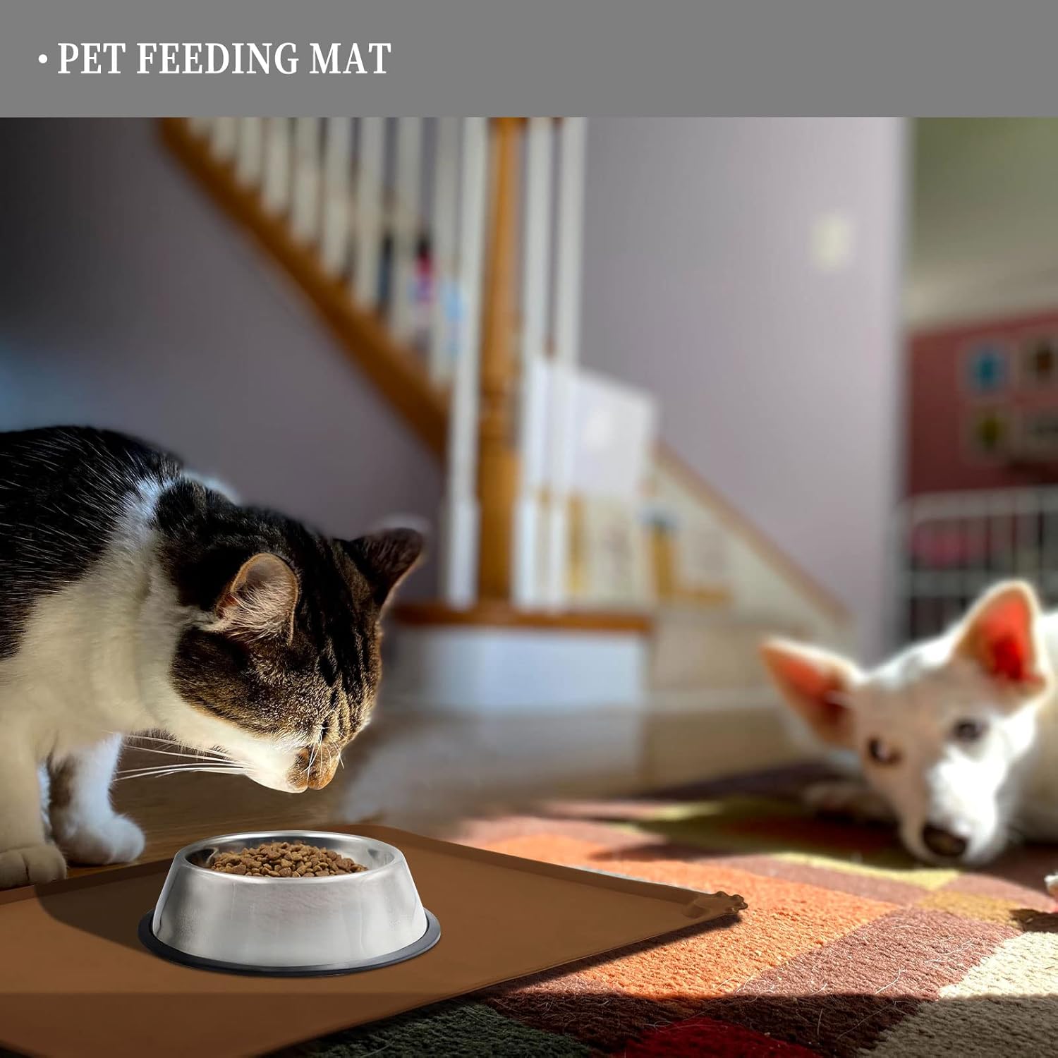 - Anti-slip design: our non-slip pet feeding mat ensures stability for your pet's bowl, preventing any water stains or spills on the floor. Enjoy peace of mind when feeding your pet, knowing that their food stays in place