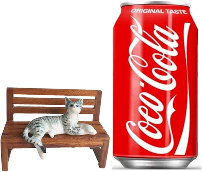 Ceramic Cat Figurine Relaxed Gray Tabby Porcelain Kitten Adorable Pet Kitty Collectible Miniatures Hand Painted Animal with Bench Home Decor or Gift