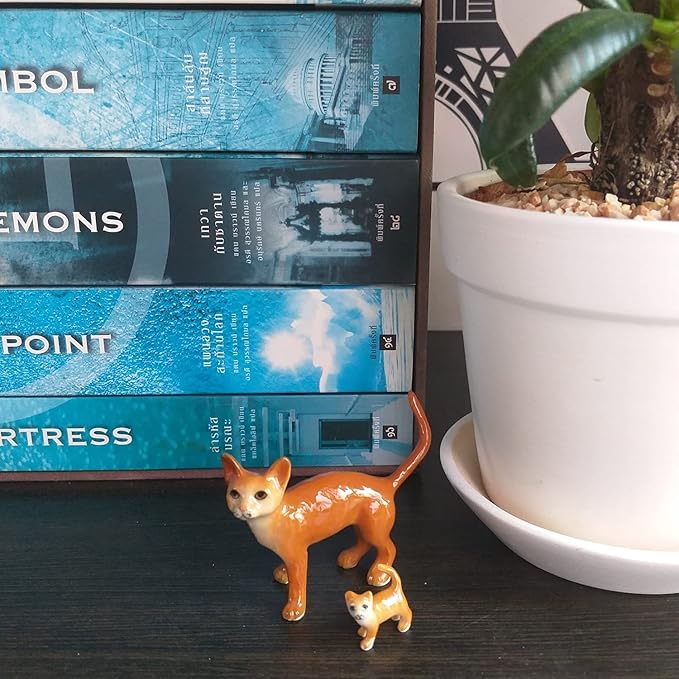 Ceramic Burmese Cat Mom and Baby Kitten Figurine Pet Kitty Porcelain Collectible Miniatures Dollhouse Hand Painted Animal Red Brown, 2.1 x 0.9 x 2 inches (L-W-H)