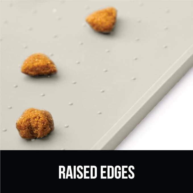 GORILLA GRIP 100% Waterproof Raised Edge BPA Free Silicone Pet Feeding Mat, Dog Cat Food Mats Contain Spills Protects Floors, Placemats for Cats and Dogs Water Bowl, Pets Accessories 16x10, Cream