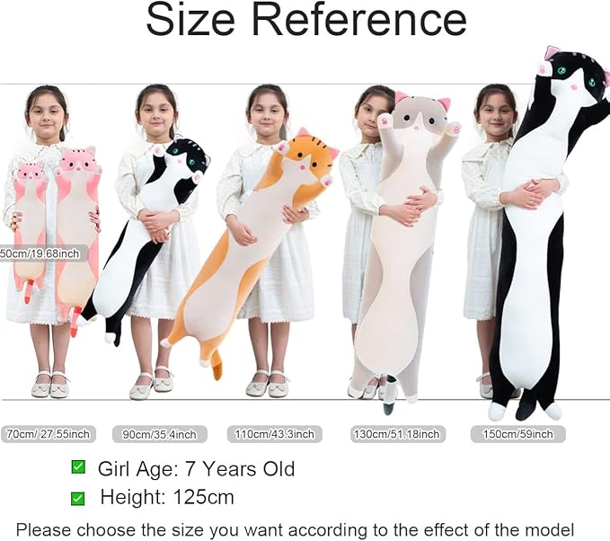 - PREMIUM HUGGING PILLOW: Our Cuddly Cat Plush made of hight quality elastic fabric and stuffed with Soft PP Cotton, you will feel very comfortable when you hug him