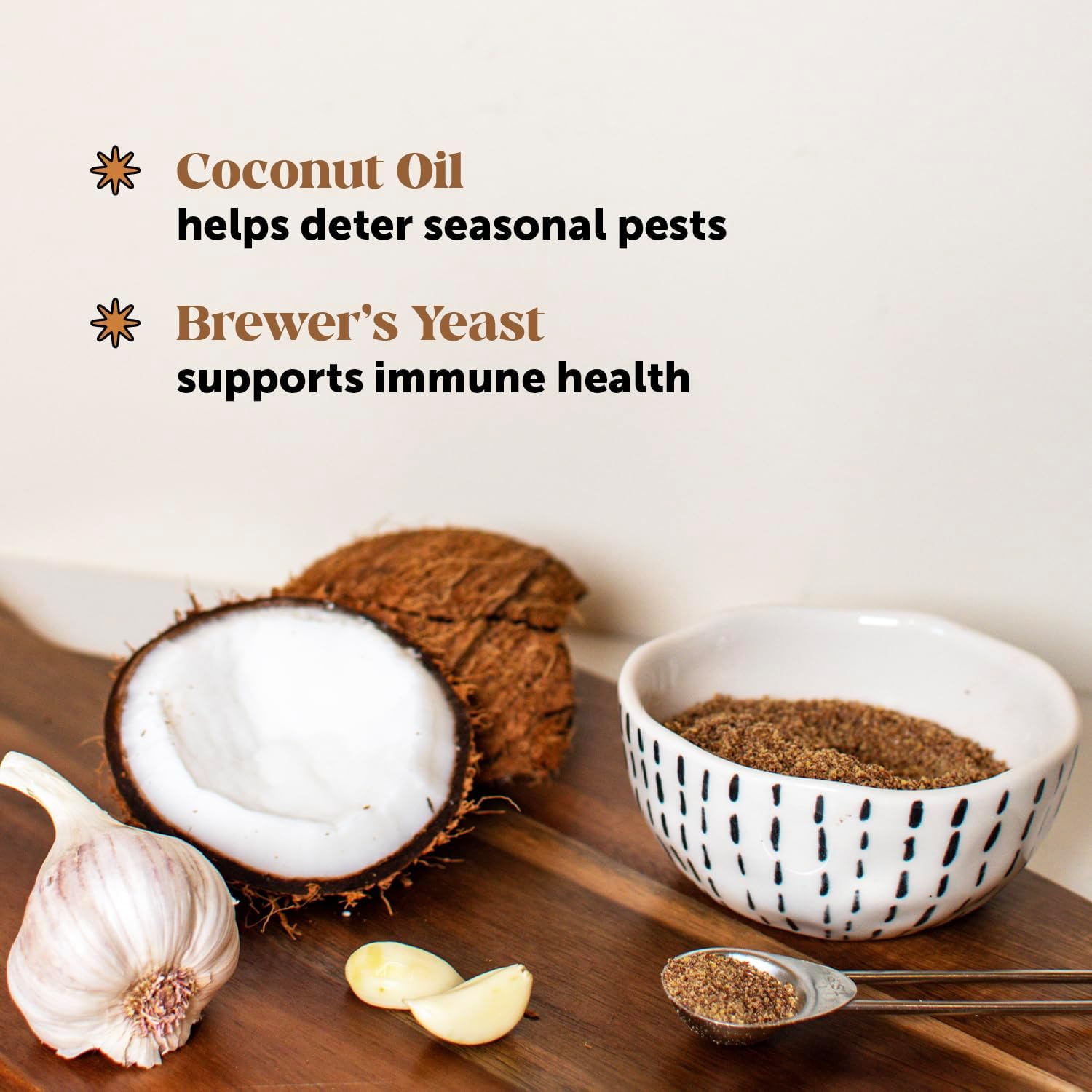 - THE GREATER OUTDOORS - Because of what’s inside our flea & tick chewables, your pup’s gonna love going outside even more. We make our natural flea and tick chews with wholesome ingredients like coconut oil that contains fatty acids to help deter seasonal critters, brewer’s yeast to support immune system health, & garlic, to help keep fleas, ticks & other unwanted creepy crawlies at bay. This isn’t just flea & tick prevention, it’s a healthier way to provide resistance to pests.
