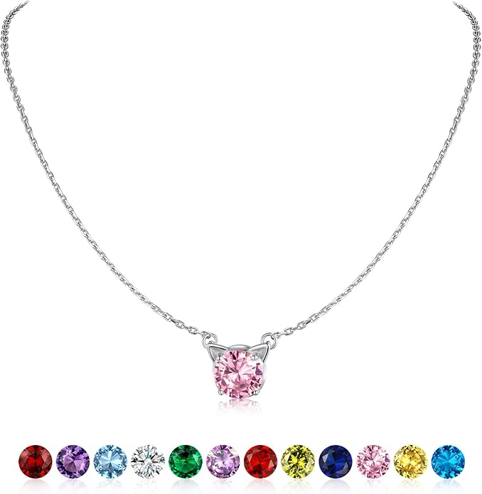 SILVERCUTE Sterling Silver Birthstone Necklace for Women,Dainty Silver Pendant Necklace with Round Cubic Zirconia,16"-18"