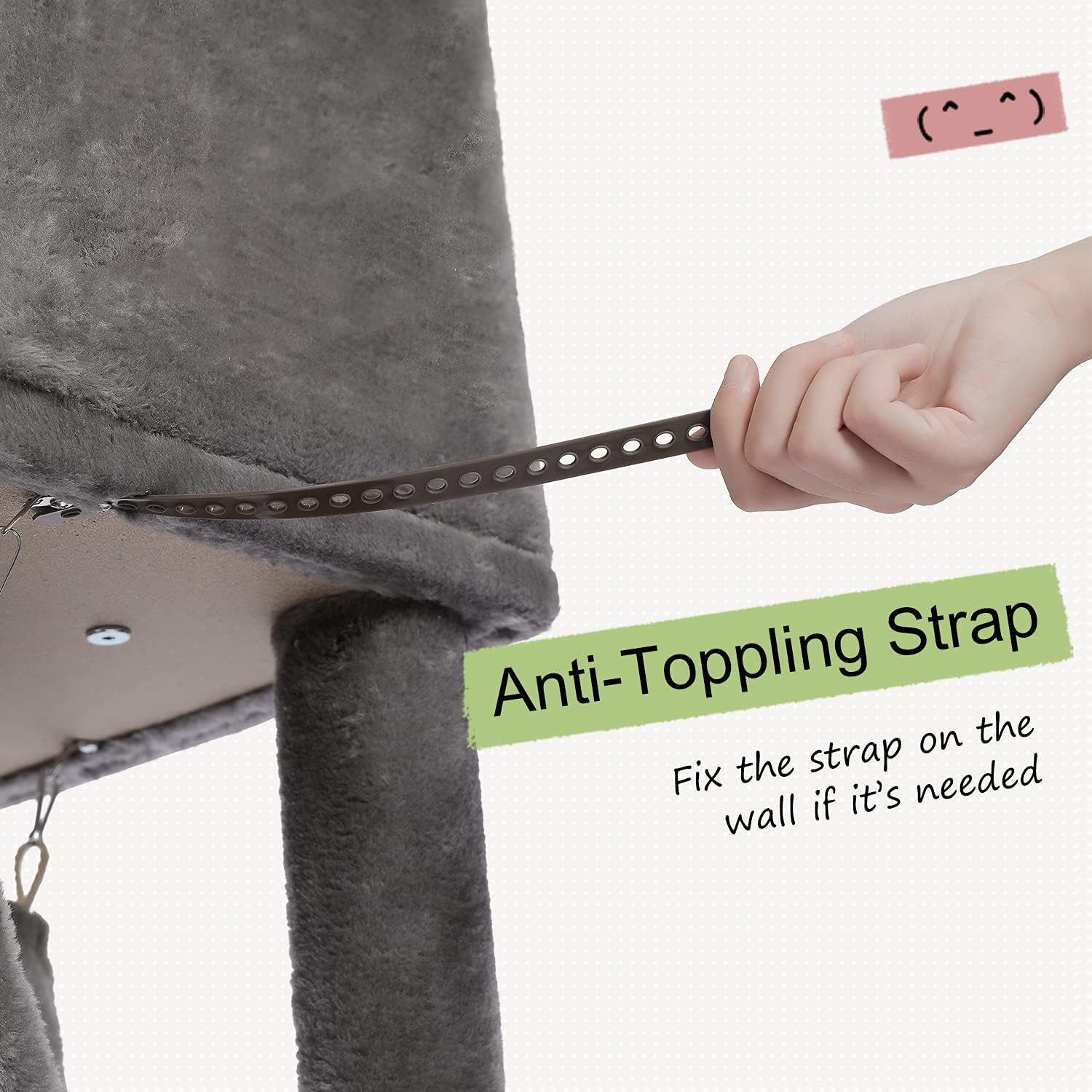 - 5.EASY TO ASSEMBLE:Concise construction with illustrated instruction and necessary hardware pack, the cat tree tower is super easy to install. Plus, Free replacement for all the parts except dangling ball within one year. Please feel free to contact us if you have any concerns during purchase
