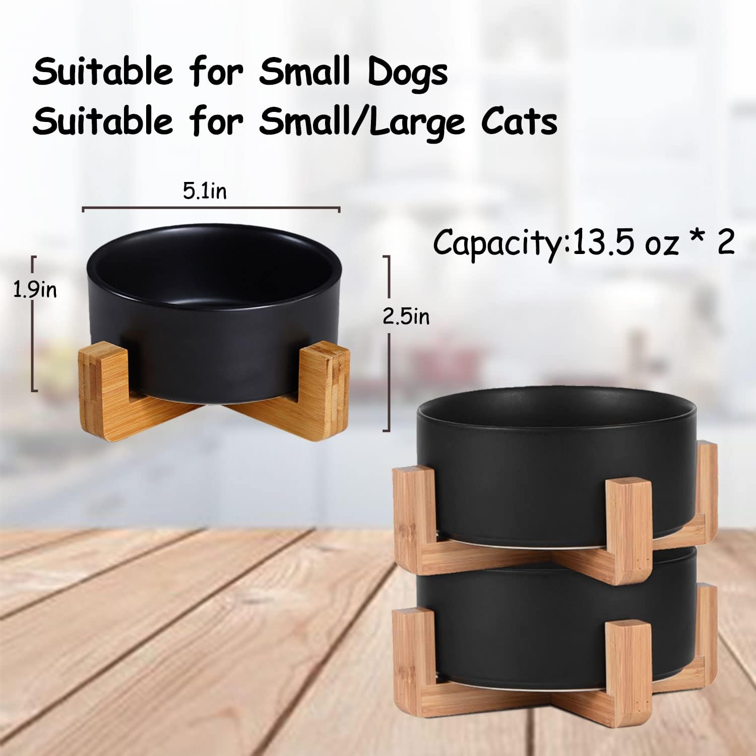 - Black Small Ceramic dog bowl set Capacity : 1.7 cups(400ml, 13.5 Fluid Ounces) , measures 5.1" Dia x 2.5H",this set of 2 ceramic dog bowls Perfect for holding dry wet food and can snack,this is the pet food bowl for for your Cats,Dachshund, Yorkie, Shih Tzu, Pomeranian or Chihuahua.