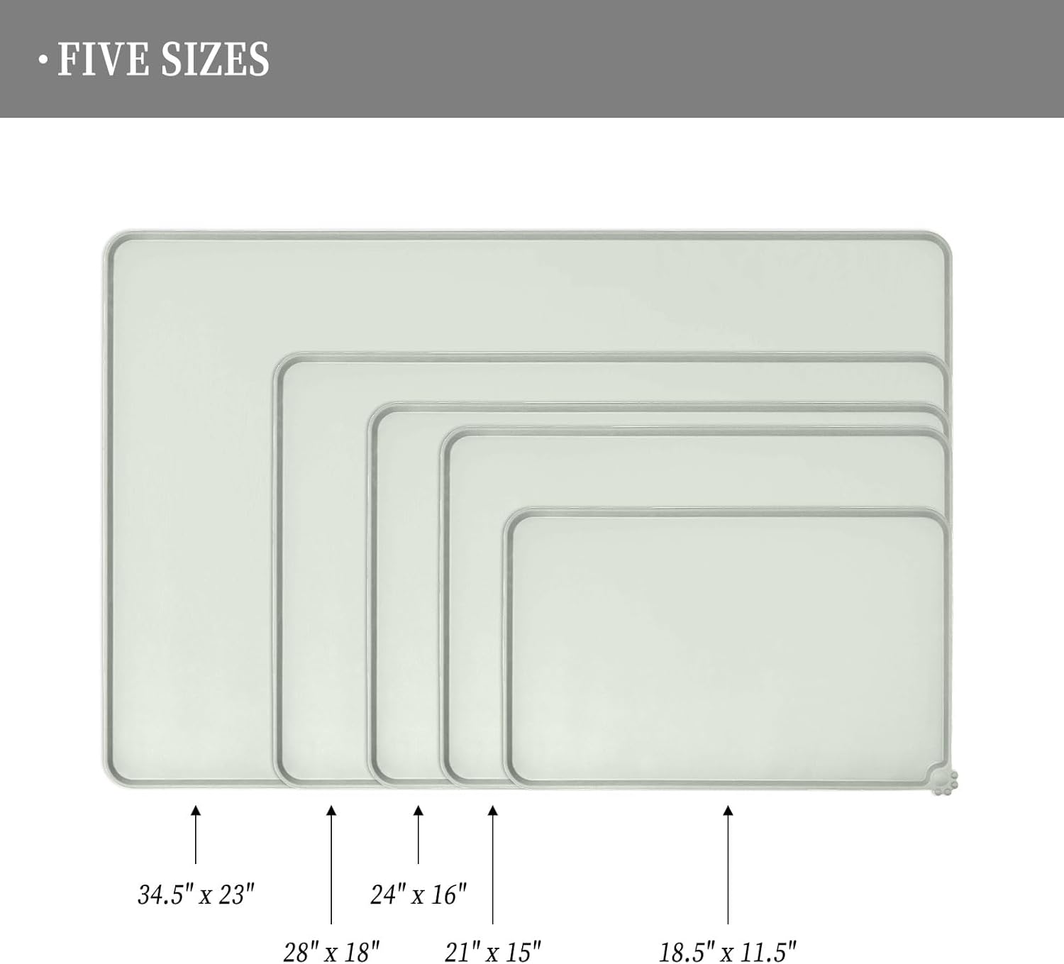 • Various sizes available: our pet mats come in 5 different sizes - 18.5" x 11.5", 22" x 14", 24" x 16", 28" x 18", and 32" x 24". Suitable for all kinds of pets, from puppies to large pets, choose the perfect size for your furry friends and avoid messy spills at mealtime