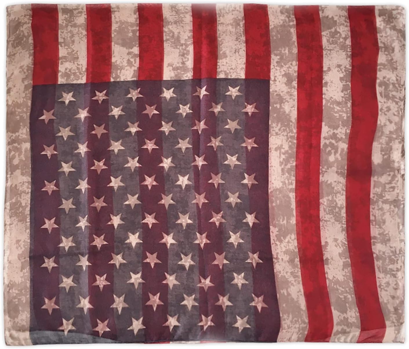 - The faded USA flag scarf is a great addition to your collection of fashion accessories. The lightweight wrap scarfs can be worn around hair, head, face, neck, shoulder or waist. The elegant scarf for handbag or hat are funny and adorable.