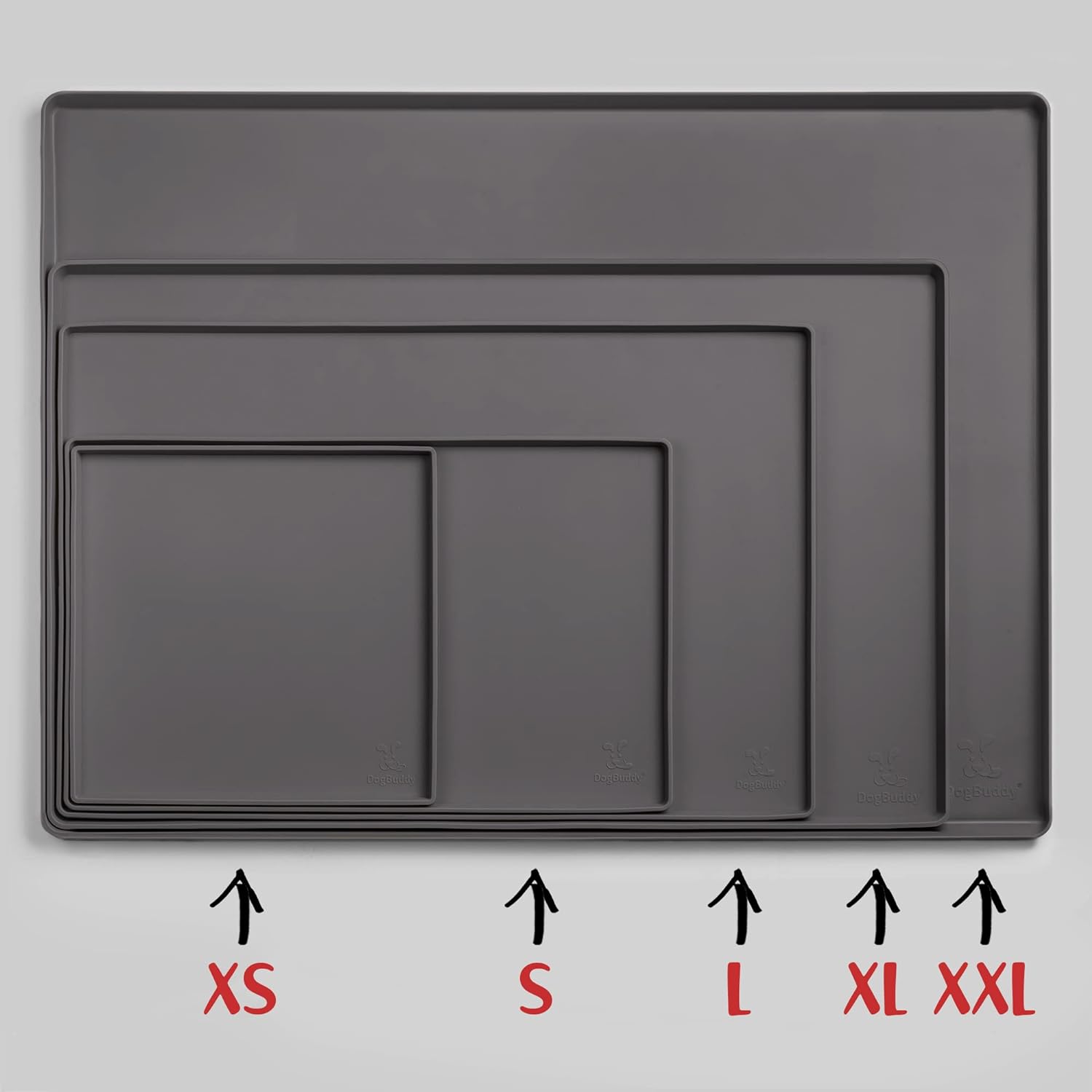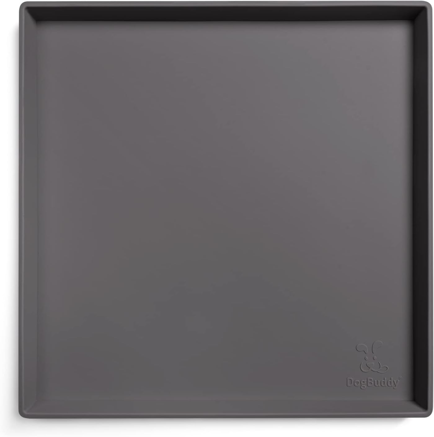 DogBuddy Dog Food Mat – Waterproof Dog Bowl Mat for Food and Water, Silicone Pet Feeding Mats For Floors, Non-Slip Placemat with High Edges For Dogs Bowls, Puppy Essentials (XS: 11" x 11", Shadow