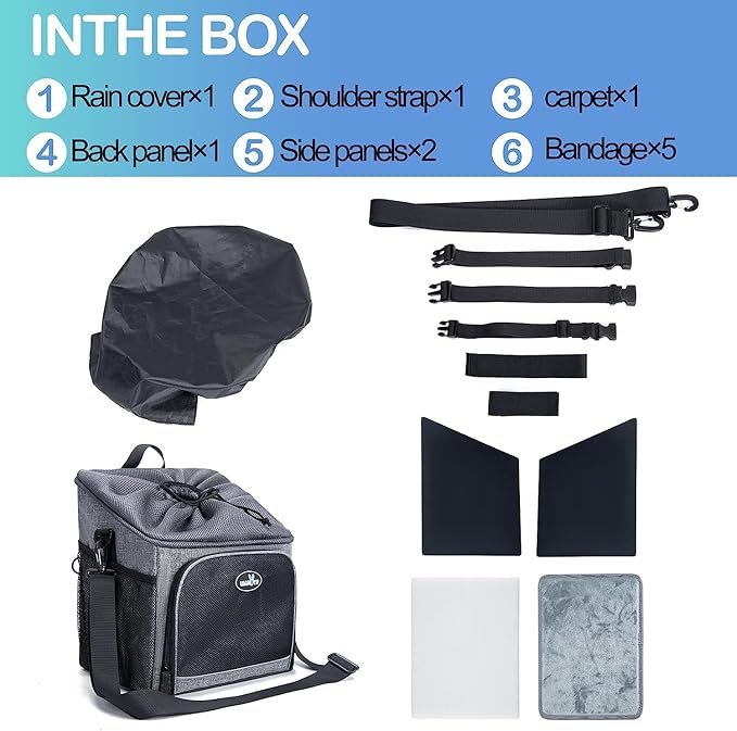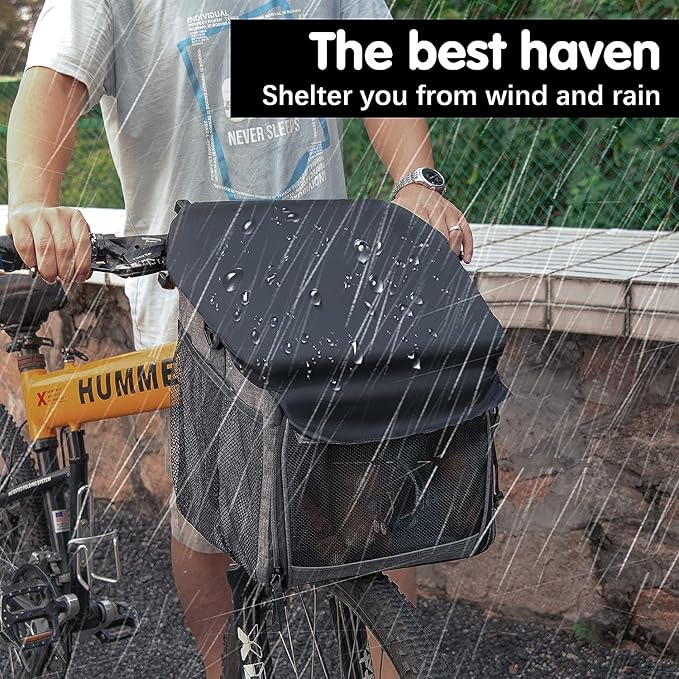 - 🐕【SKYLIGHT ANTI-ESCAPE】: ①Wakytu multifunctional bicycle dog basket is topped by a mesh design skylight with a drawstring opening design that allows your pet to show its head and enjoy the scenery along the way. ②Built-in adjustable safety rope buckle, fixed on the collar can prevent pets from escaping. ③ Entrance zipper with locking buckle to avoid pets scratching to open the zipper.