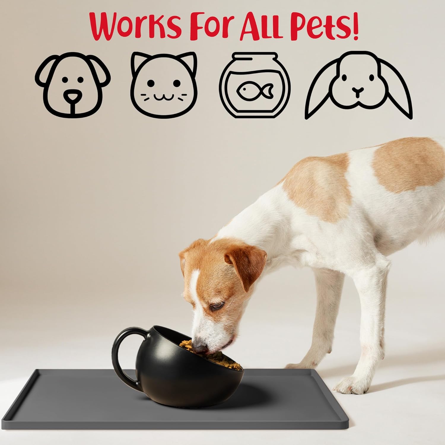 DogBuddy Dog Food Mat – Waterproof Dog Bowl Mat for Food and Water, Silicone Pet Feeding Mats for Floors, Non-Slip Placemat with High Edges for Dogs Bowls, Puppy Essentials (L: 24" x 16", Shadow)