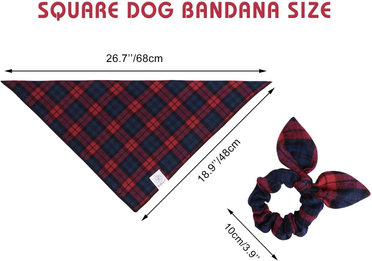 - Matching Bandana and Scrunchie Set - It’s full of love when your pets is wearing the dog handkerchief bandana and you are wearing the bow scrunchies. When traveling, sleeping, taking photos or daily walking, adorable dog bandana girl and plaid scrunchie is a pretty accessories. The scrunchie can be worn as a wrist accessory and hold your hair. Beautiful dog drool bibs and bow scrunchie with red and blue tartan pattern, it’s nice photo props for holiday.