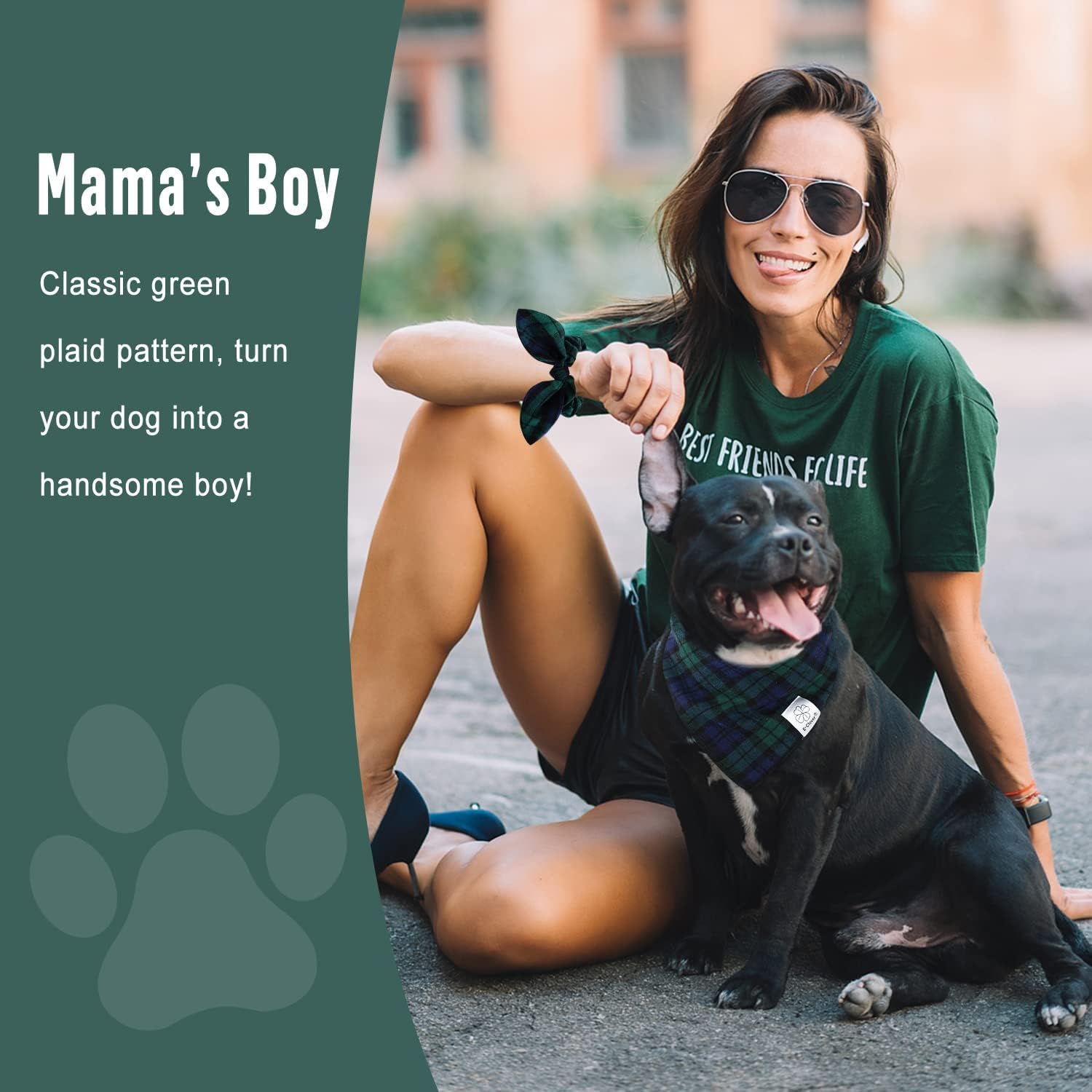 E-Clover Dog Bandanas Boy & Matching Scrunchie Set Plaid Scarf Kerchief for Small Dog Puppy Bandana Pet Owner Blue Green Fall