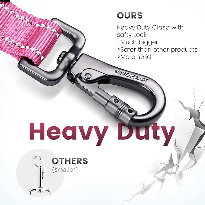 IOKHEIRA 6Ft /4Ft Dog Leash Rope for Large Dogs, Heavy Duty with Comfortable Padded Handle and Highly Reflective Threads,4-in-1 Multifunctional Dog Leashes with Car Seat Belt for Training (Pink)