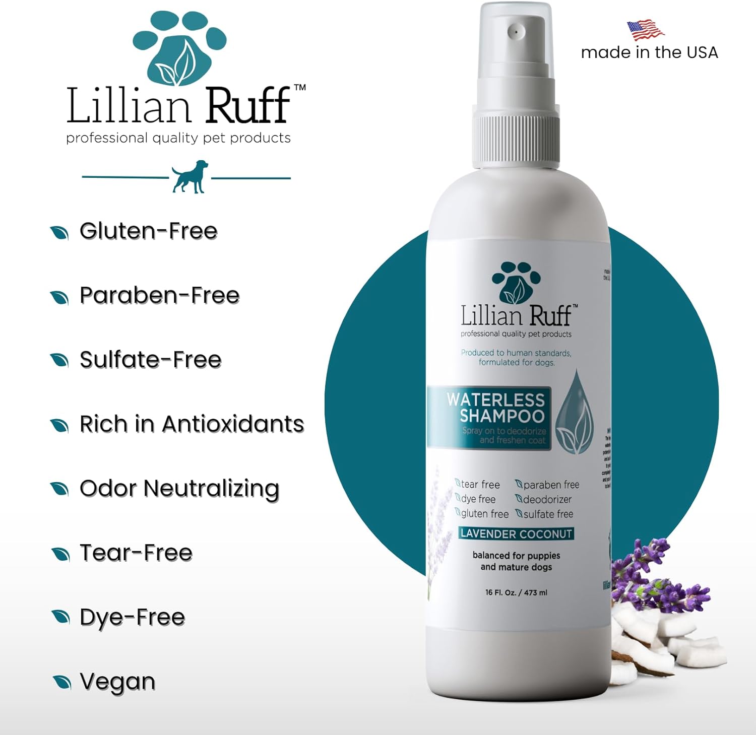 - A Brand Used by Professionals – Lillian Ruff serves professional vets and groomers all over the world thanks to our gentle formula and quality ingredients. Everything at Lillian Ruff is produced to human standards and formulated for Pets.