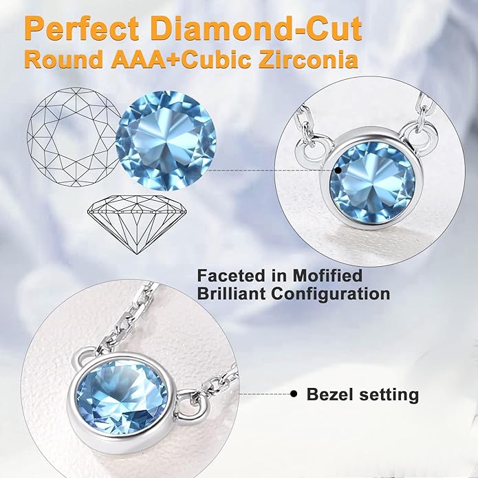 SILVERCUTE Sterling Silver Birthstone Necklace for Women,Dainty Silver Pendant Necklace with Round Cubic Zirconia,16"-18"