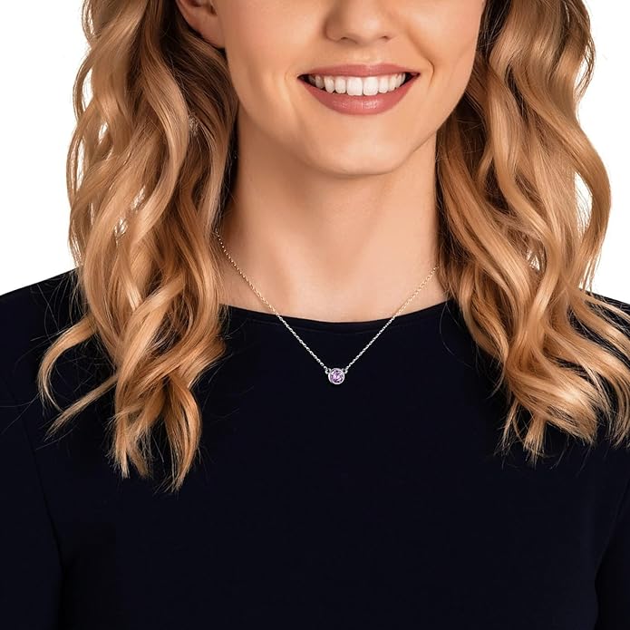 SILVERCUTE Sterling Silver Birthstone Necklace for Women,Dainty Silver Pendant Necklace with Round Cubic Zirconia,16"-18"