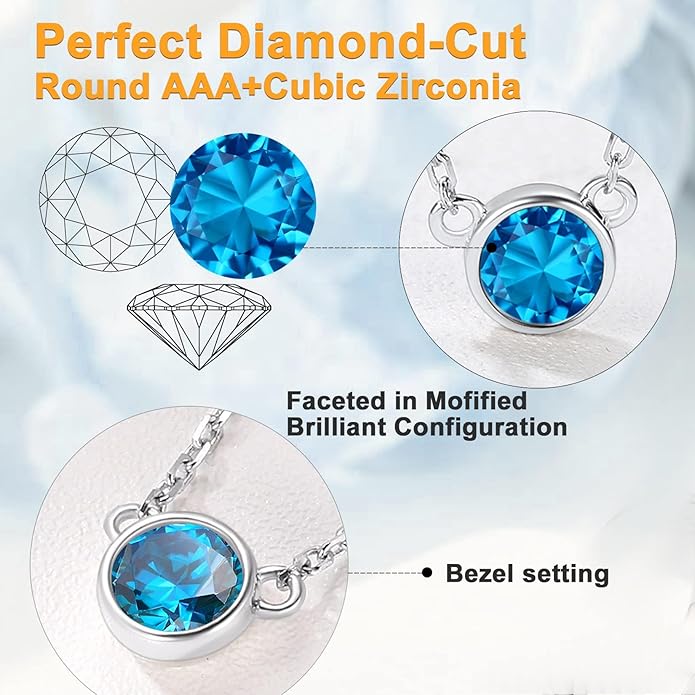 SILVERCUTE Sterling Silver Birthstone Necklace for Women,Dainty Silver Pendant Necklace with Round Cubic Zirconia,16"-18"