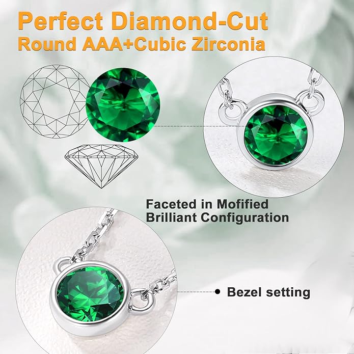 - May Birthstone Necklace -Emerald, Stunning 6mm cubic zirconia crystal round set in a silver pendant to complete this small pendant.