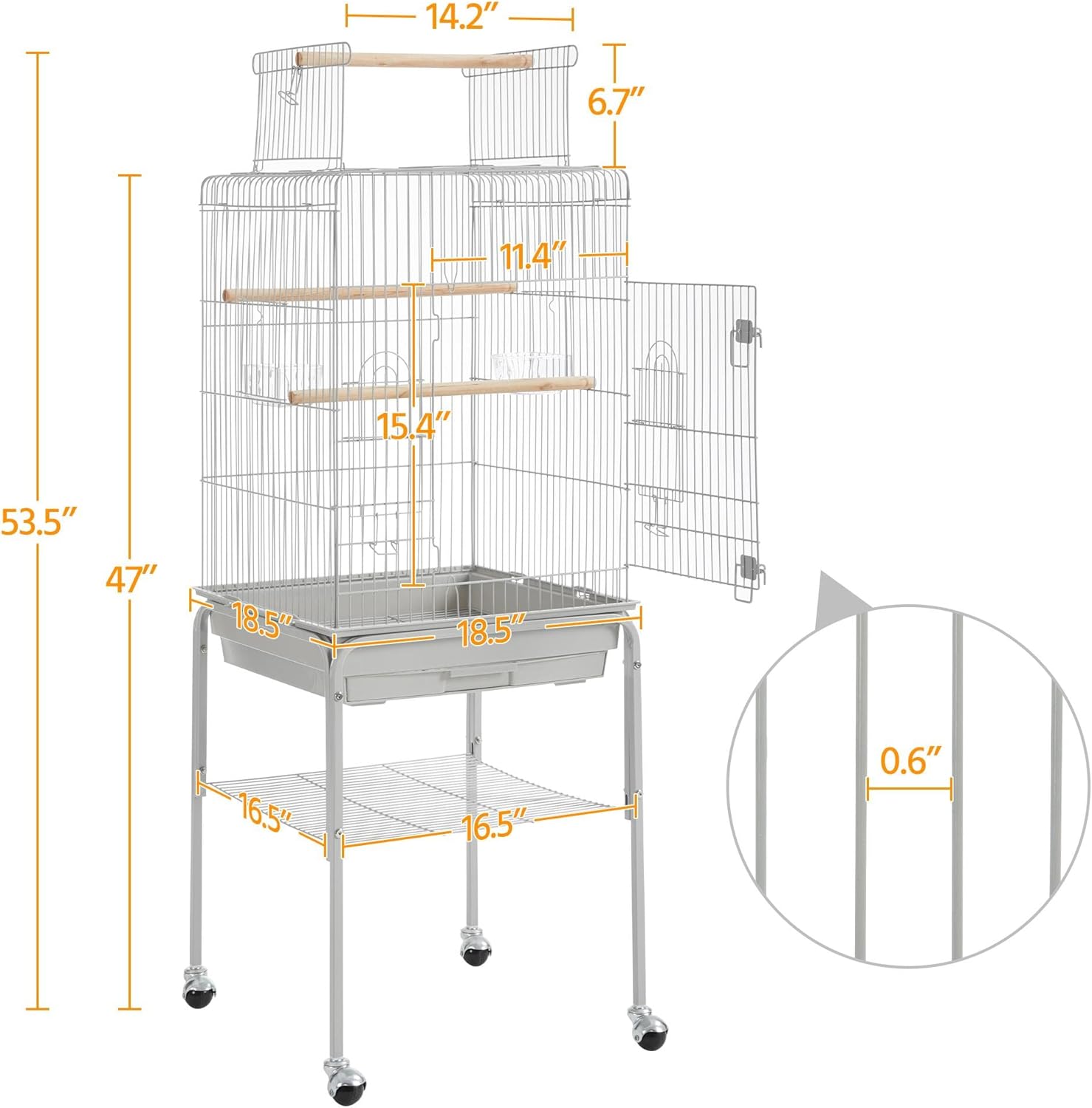 Yaheetech 53.5'' Metal Bird Cage Open Top Parrot Cage w/Stand for Parakeets Cockatiel Canary Quaker Budgies