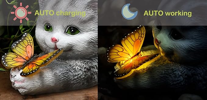 Solar Garden Statue Cat,Garden Figurine Outdoor Decoration with Cat Holding Butterfly for Yard,Patio,Lawn Art Decoration,Housewarming Gift