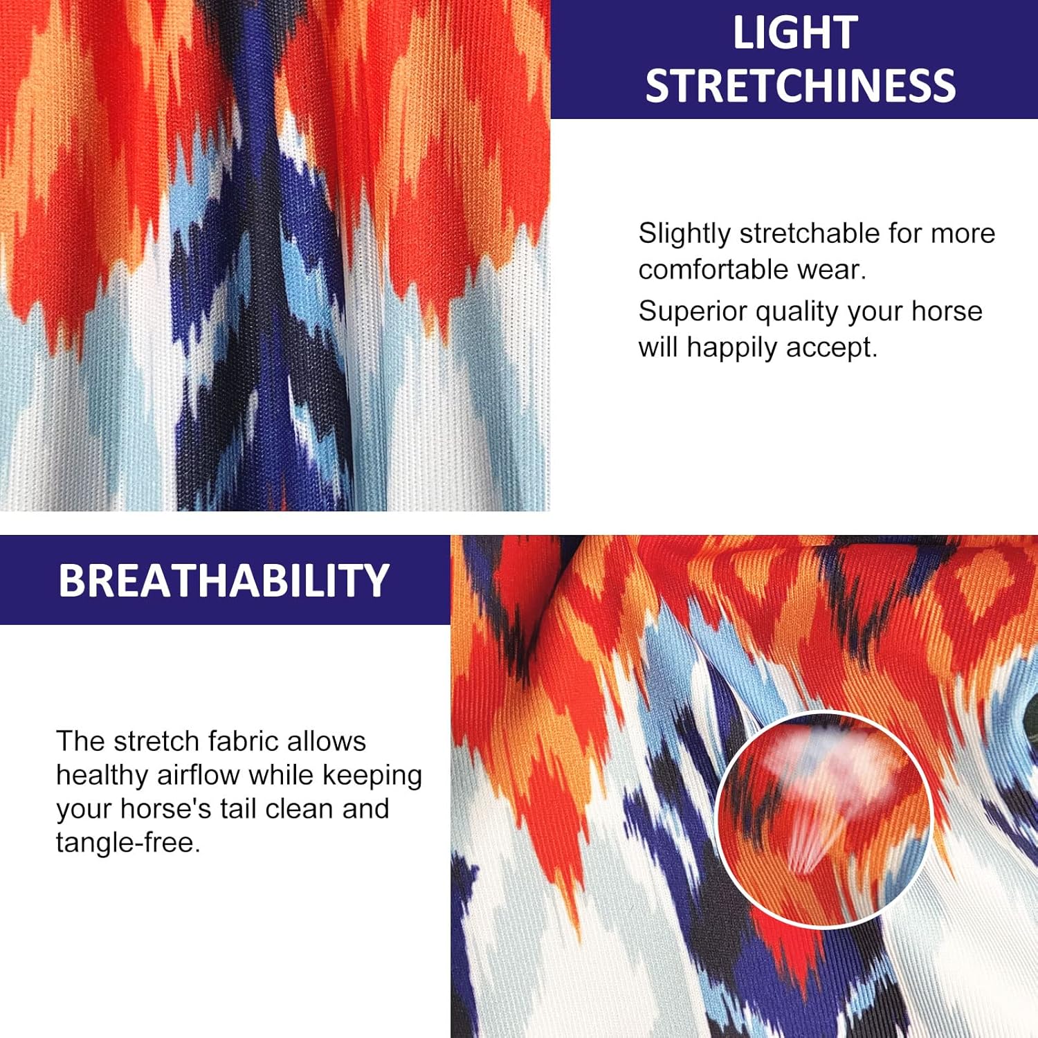 Harrison Howard Stretchy Tail Bag Breathable Horse Tail Guard Slip on Design Protect Horse Tail 2 Strand Closure Straps Keep Tail Clean & Protected 22" L Length Makes Grooming Easy-Tribal Abstract
