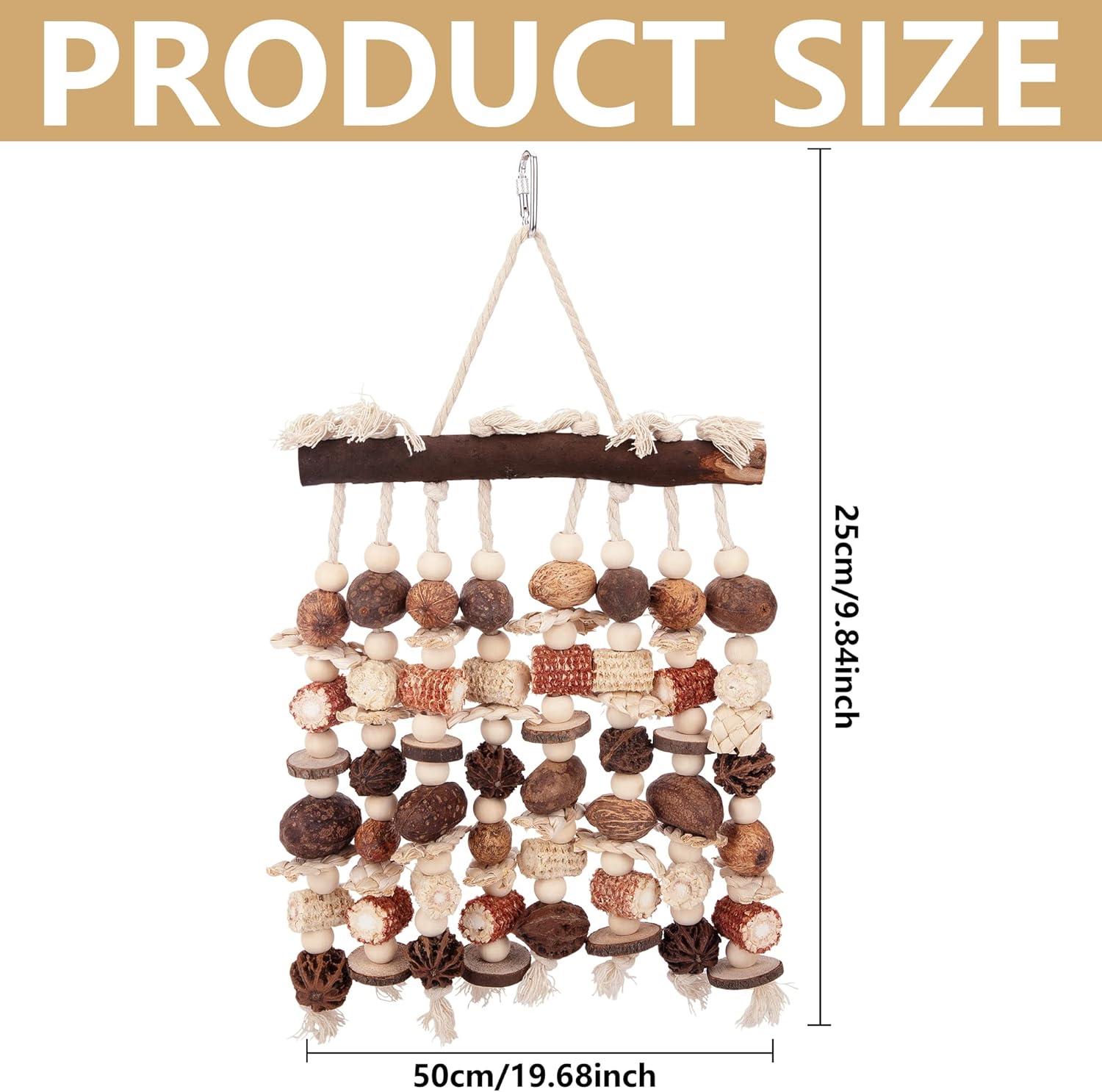 - Safe Materials: Our large parrot toys are made of natural wood, nuts, corn on the cob and other natural materials to attract parrots to bite, chew, climb and explore, completely handcrafted, durable, safe for pets and will not harm them.