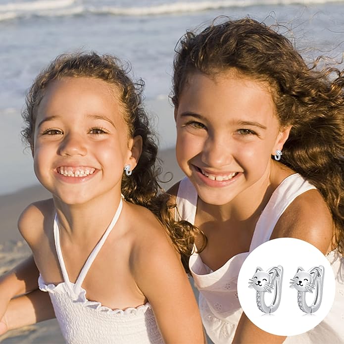 - Girls Earrings Material: The cat jewelry is made of 925 sterling silver material, and the sparkling AAAAA+ cubic zirconia make it more elegant and delicate. hypoallergenic, anti-rust, nickel-free, lead-free, cadmium-free, not contain any allergic elements. Long Time Wearing Keeps You a Good Health.