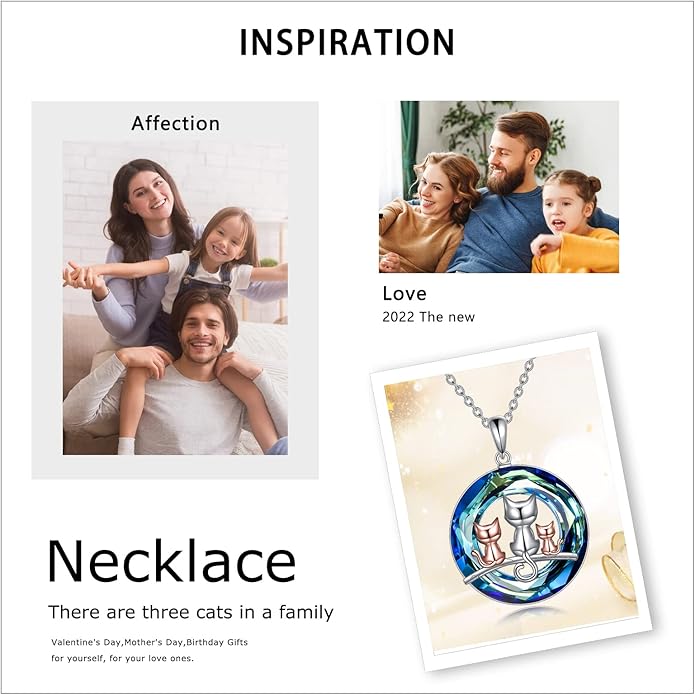 POPLYKE Cat/Family Cat Necklace for Women 925 Sterling Silver Celtic Moon Cat Wiccan Jewelry for Wife