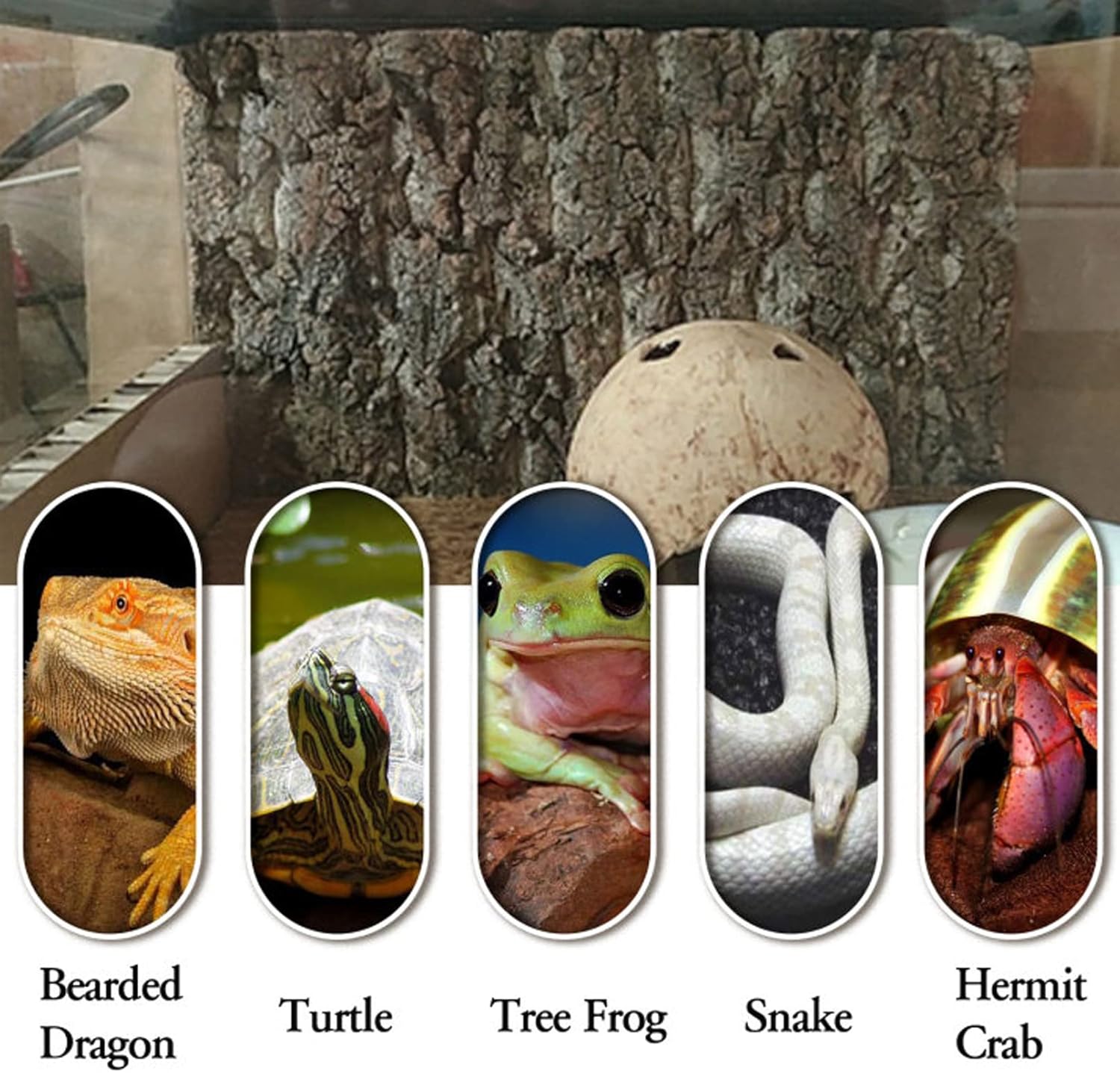 - Enhance Your Pet's Habitat: The cork bark for reptiles is not only highly durable but also reusable, making it an excellent choice for both decoration and creating a natural habitat for your pet.Whether you have turtles, lizards, bearded dragons, chameleons, tarantula enclosure, or other reptiles, this cork bark will add a touch of authenticity to their tank.