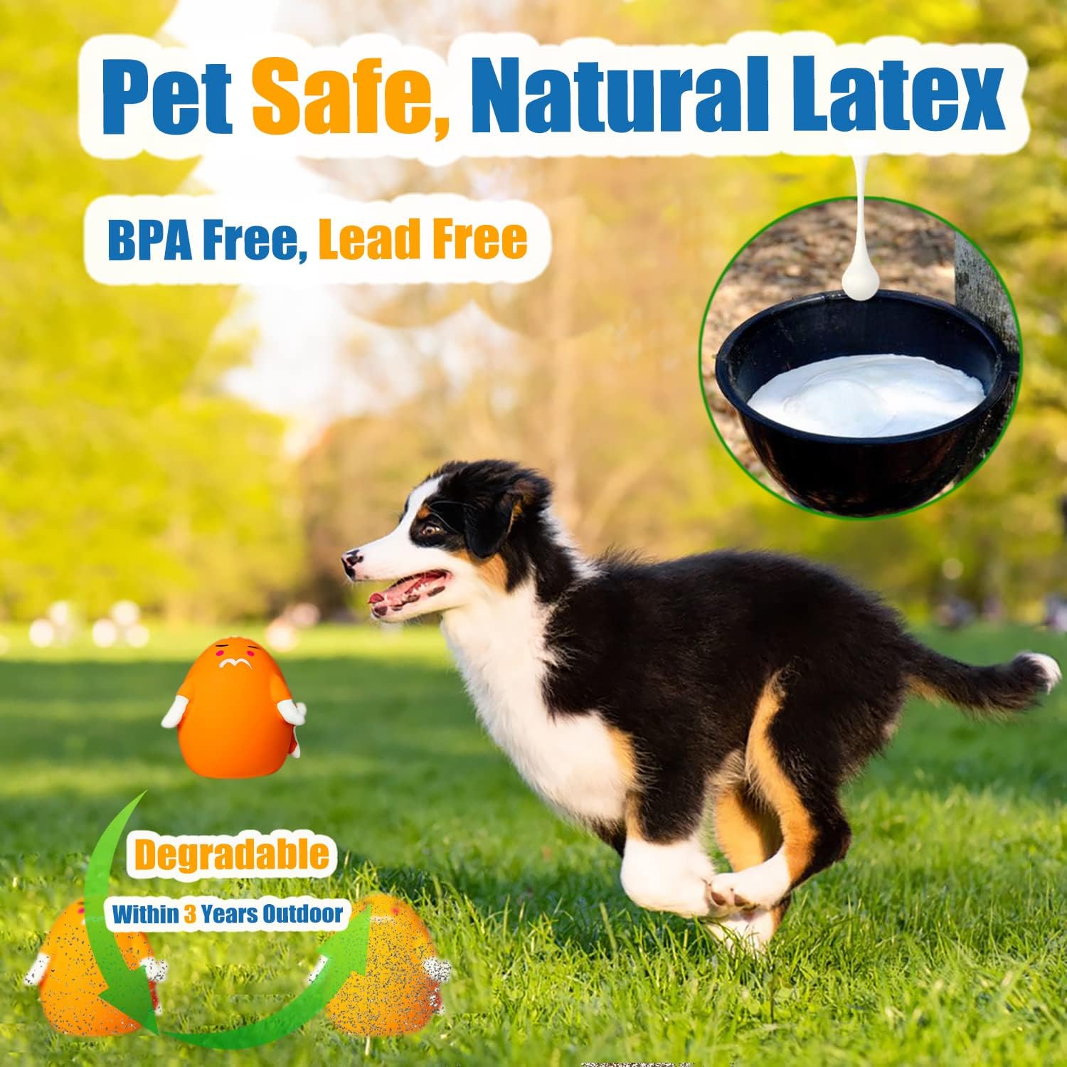 - [Safe, Natural Rubber Latex] Small squeaky Dog toys are made of natural rubber latex, non-toxic, BPA-free, and Lead-Free. The dog Squeaky balls for dogs comply with the same safety standard as children’s toys.