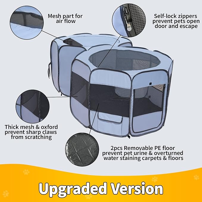 - 【Stable & Sturdy Construction】: Built with thicken metal frame, waterproof oxford cloth and reinforced stitching, ensuring long-lasting use, even with energetic pets. This playpen is designed to handle daily wear and tear while maintaining its shape.