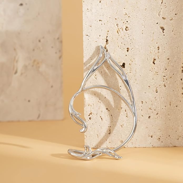 Gothic Elves Ear Cuffs 2pcs Non-Pierced Cat Ear Wrap Hollow Cartilage Climber Earrings Punk Hip Hop Clip on Statement Earrings Gift for Women