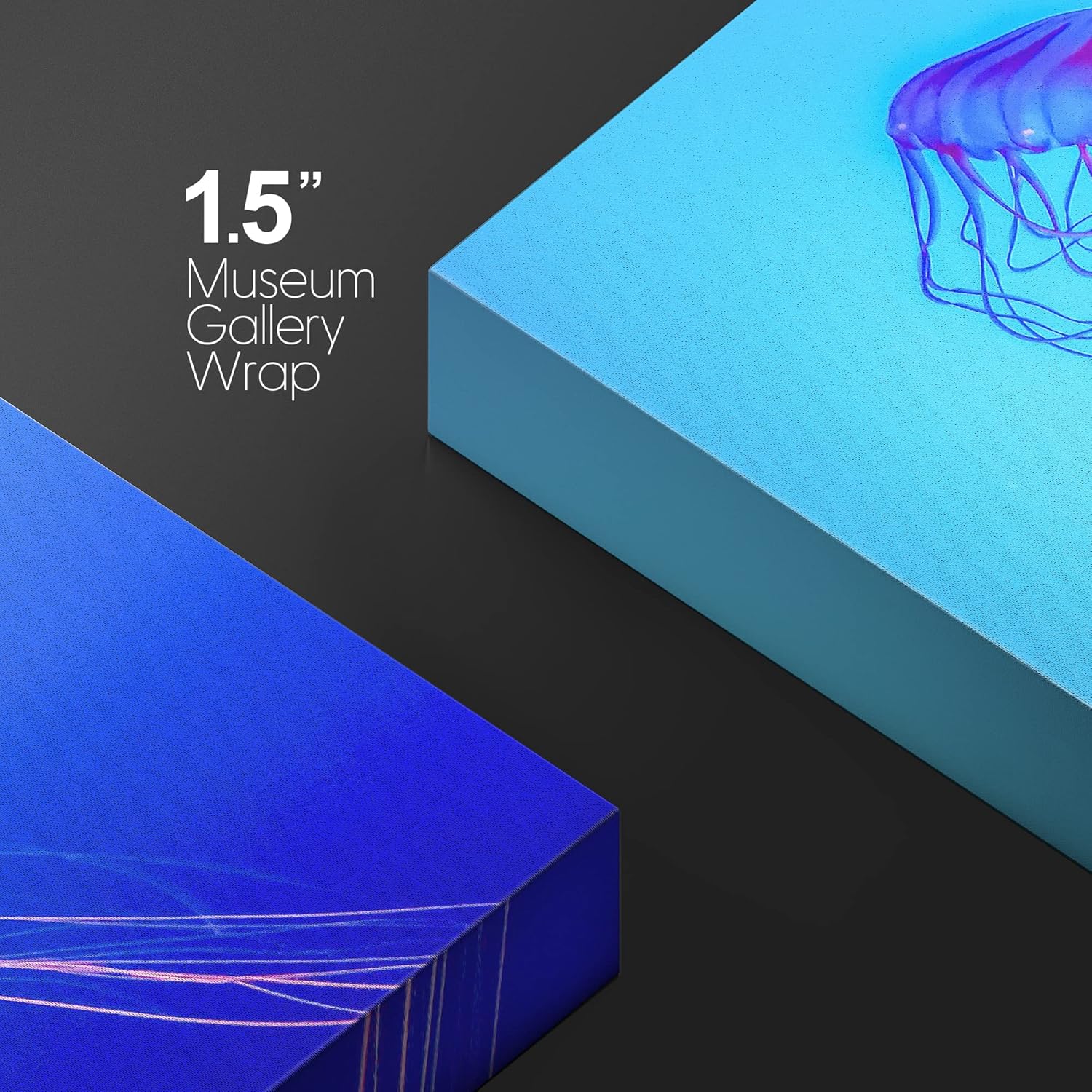 wall26 Canvas Print Wall Art Vibrant Neon Blue Pink Jellyfish Deep Sea Nature Animals Photography Realism Rustic Scenic Landscape Wilderness Earth Colorful for Living Room, Bedroom, Office - 32"x48"