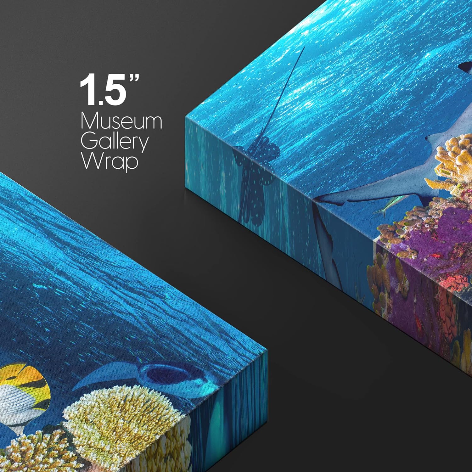 wall26 Canvas Print Wall Art Tropical Island Underwater Turtle Shark Nature Animals Photography Realism Rustic Scenic Landscape Wilderness Earth Colorful for Living Room, Bedroom, Office - 12"x18"