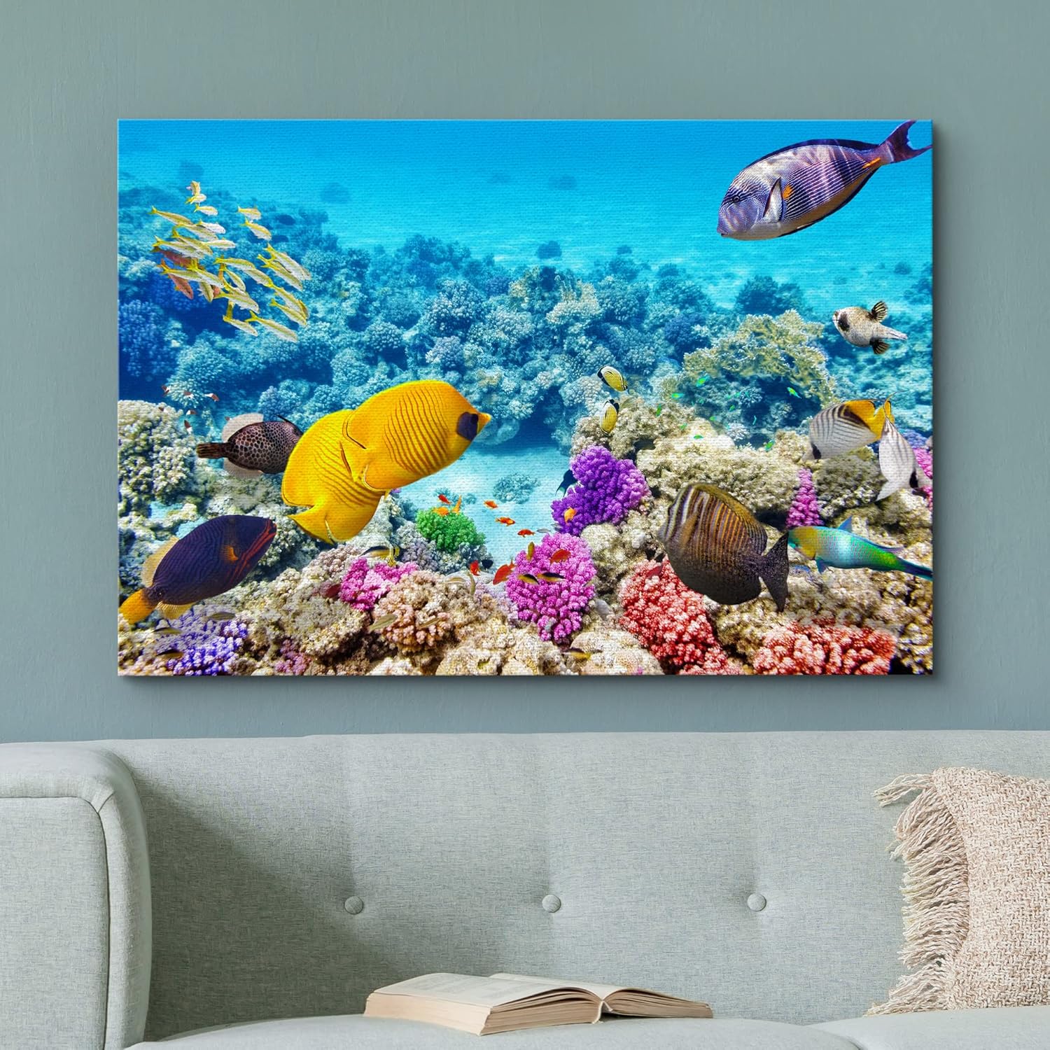 wall26 Canvas Print Wall Art Vibrant Teal Underwater Fish Coral Reef Nature Animals Photography Realism Rustic Scenic Landscape Wilderness Earth Colorful for Living Room, Bedroom, Office - 24"x36"