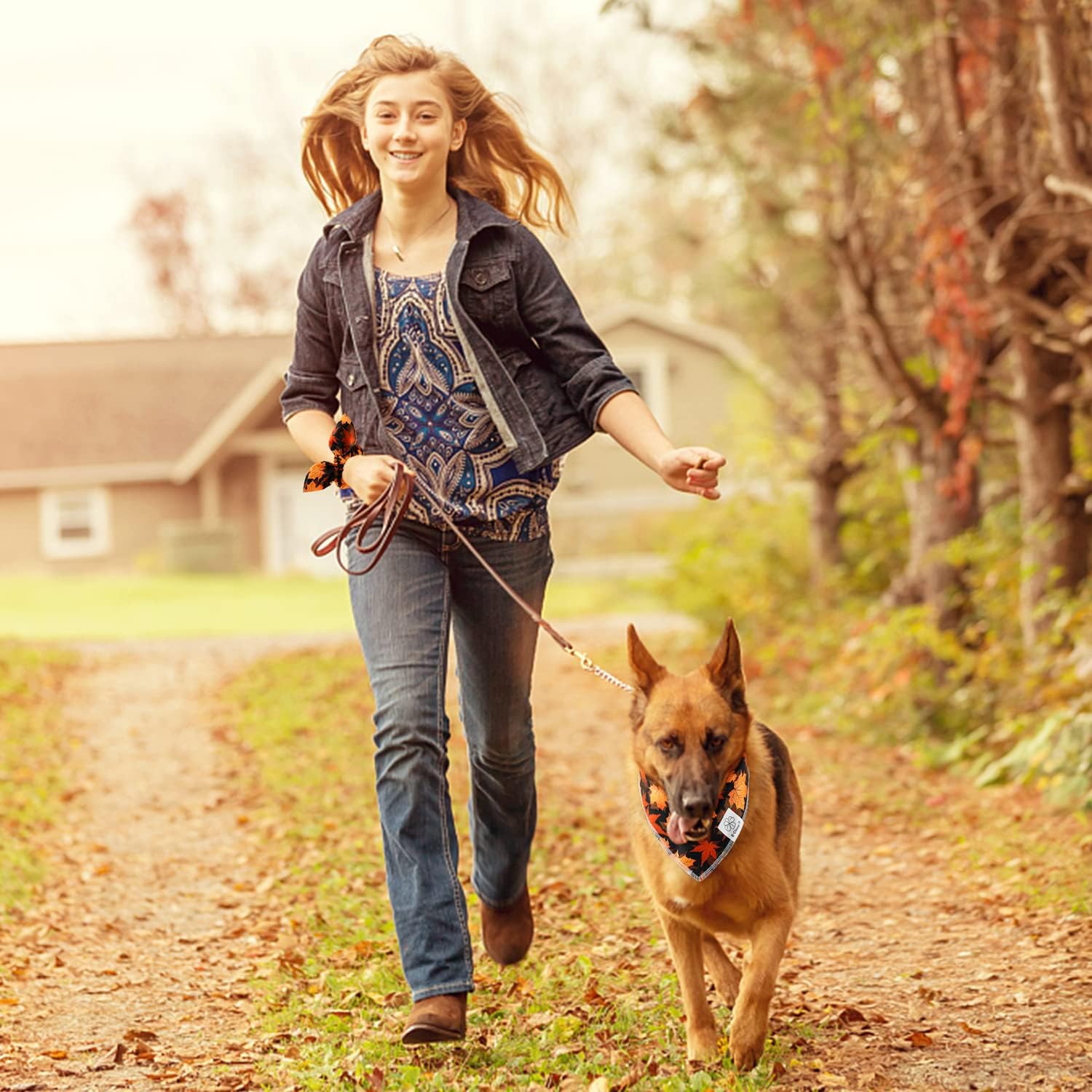 E-Clover Fall Dog Bandana & Scrunchie Set - Thanksgiving Pet Scarf Kerchief Bibs for Medium Large Dogs - Maple Leaves