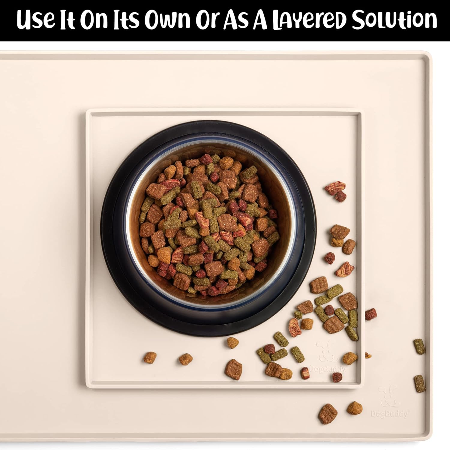 - Less Mess & Less Stress: Super high edge (0.6”) of DogBuddy Dog Food Mat keeps the spilled food and water on the mat and away from your beautiful floor. Silicone is naturally 100% waterproof, so what happens on the mat stays on the mat.