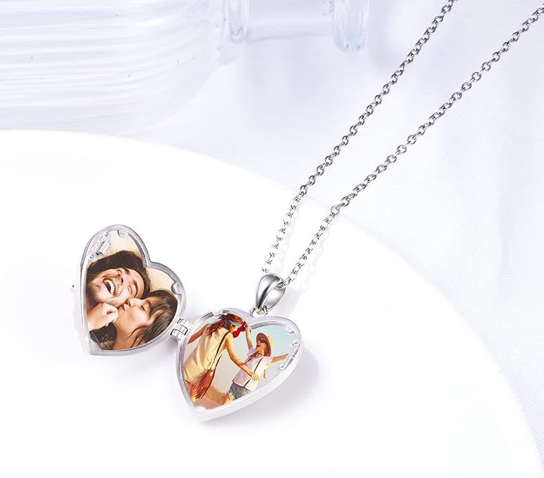 - Locket Inside photo window for very small 2 pictures , cut out the photos according to the heart-shaped template and put them in the locket , then close hidden hinge