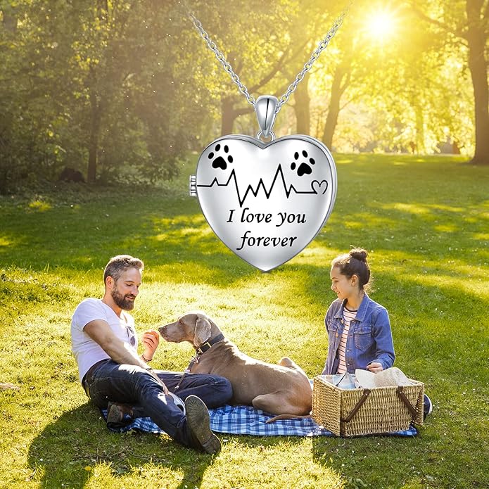 - Dog cat pet paw print sterling silver heart locket necklace engraved the phrase 'I love you forever ' , is a best gift for dog cat lovers . Let your pet close to your heart and comfort you.