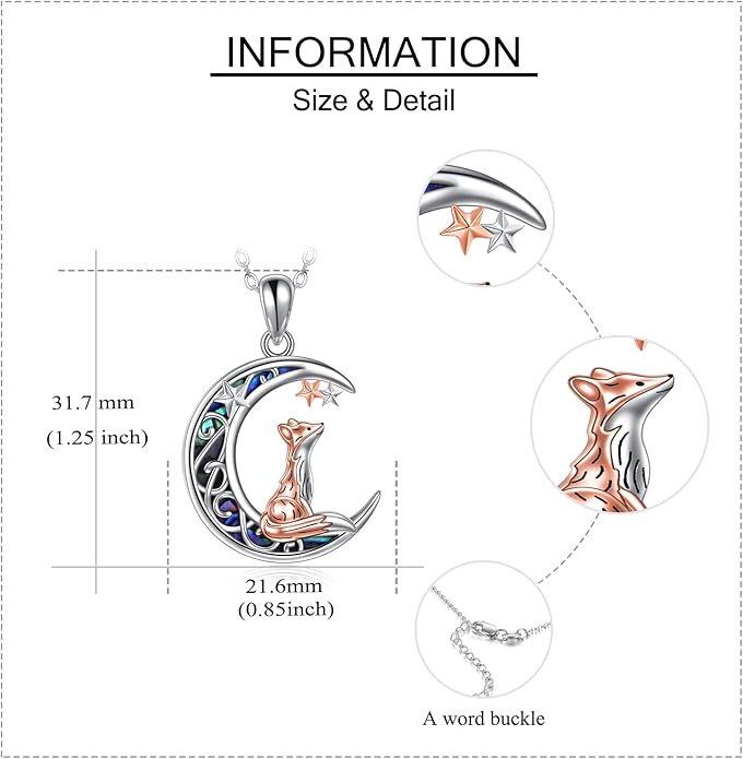 - 💞Fox Moon Jewelry🦊This fox necklace comes in a jewelry box. An ideal gift to express love and blessings for fox lover.Suit for wife, sister, daughter, mom, bridesmaid, and friends on anniversary, Women's Day, Mother's Day, Christmas, Wedding Anniversary, Valentine's Day Gift.